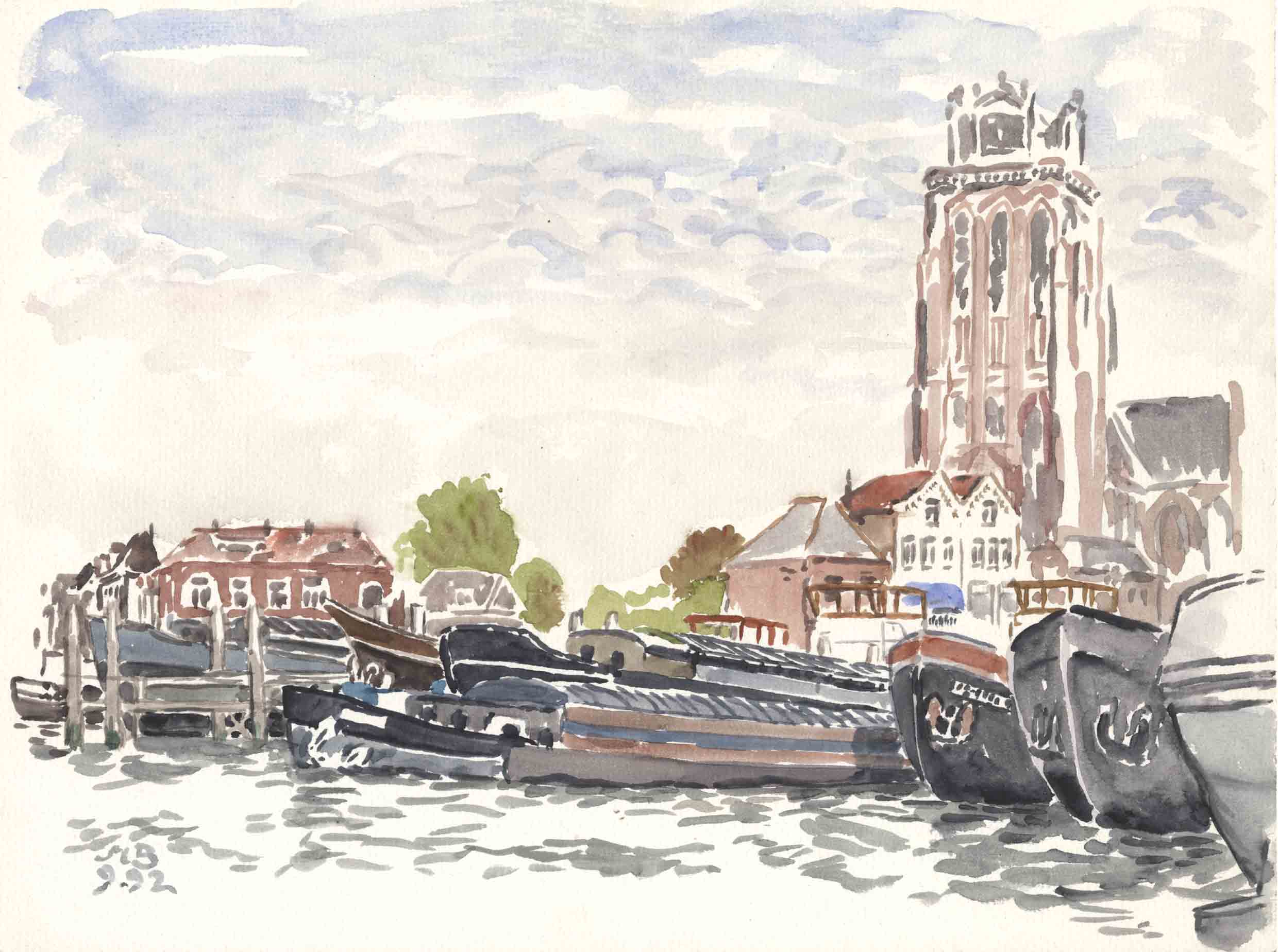 8-W-02-Aq-Dordrecht-9-1992-TMP | Dordrecht, an der Merwede gelegen, eine sehr schöne alte lebendige Stadt, mit mehreren Häfen für kleine Frachtschiffe | ||