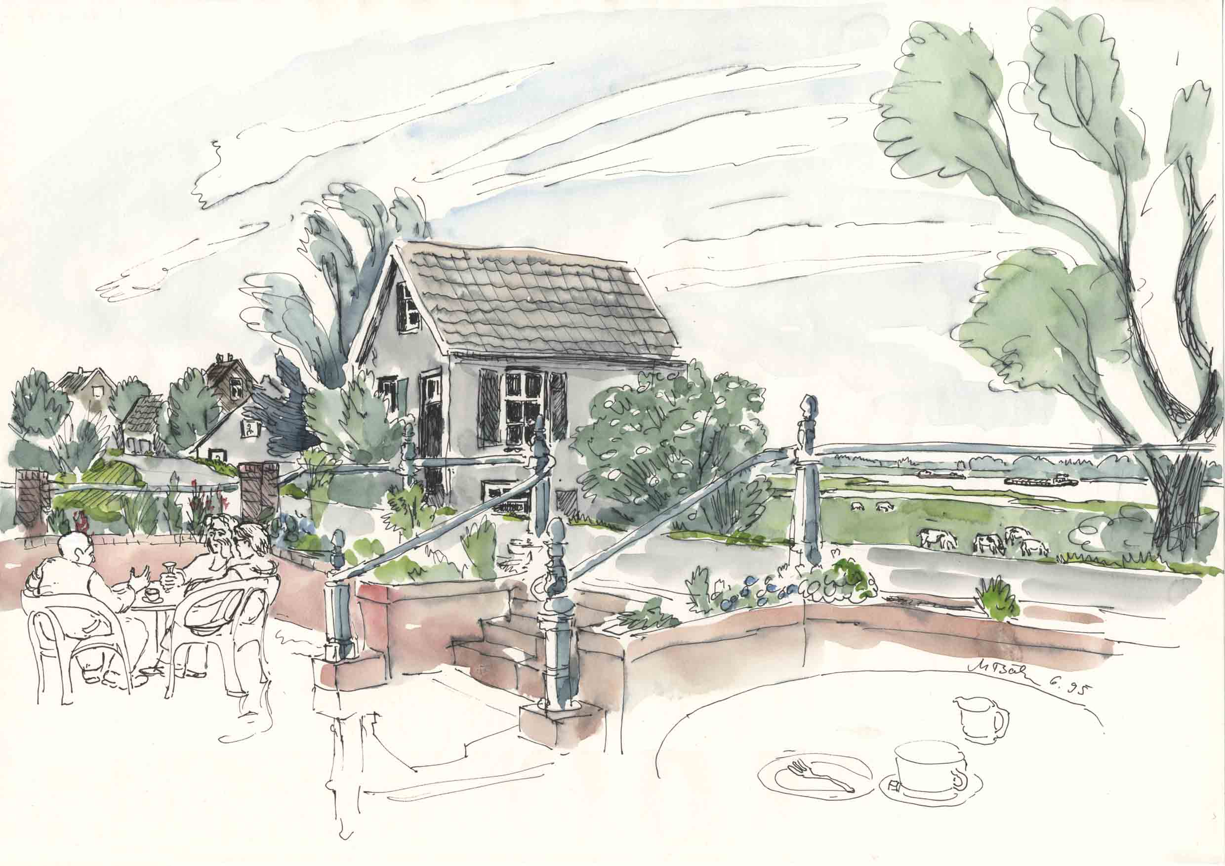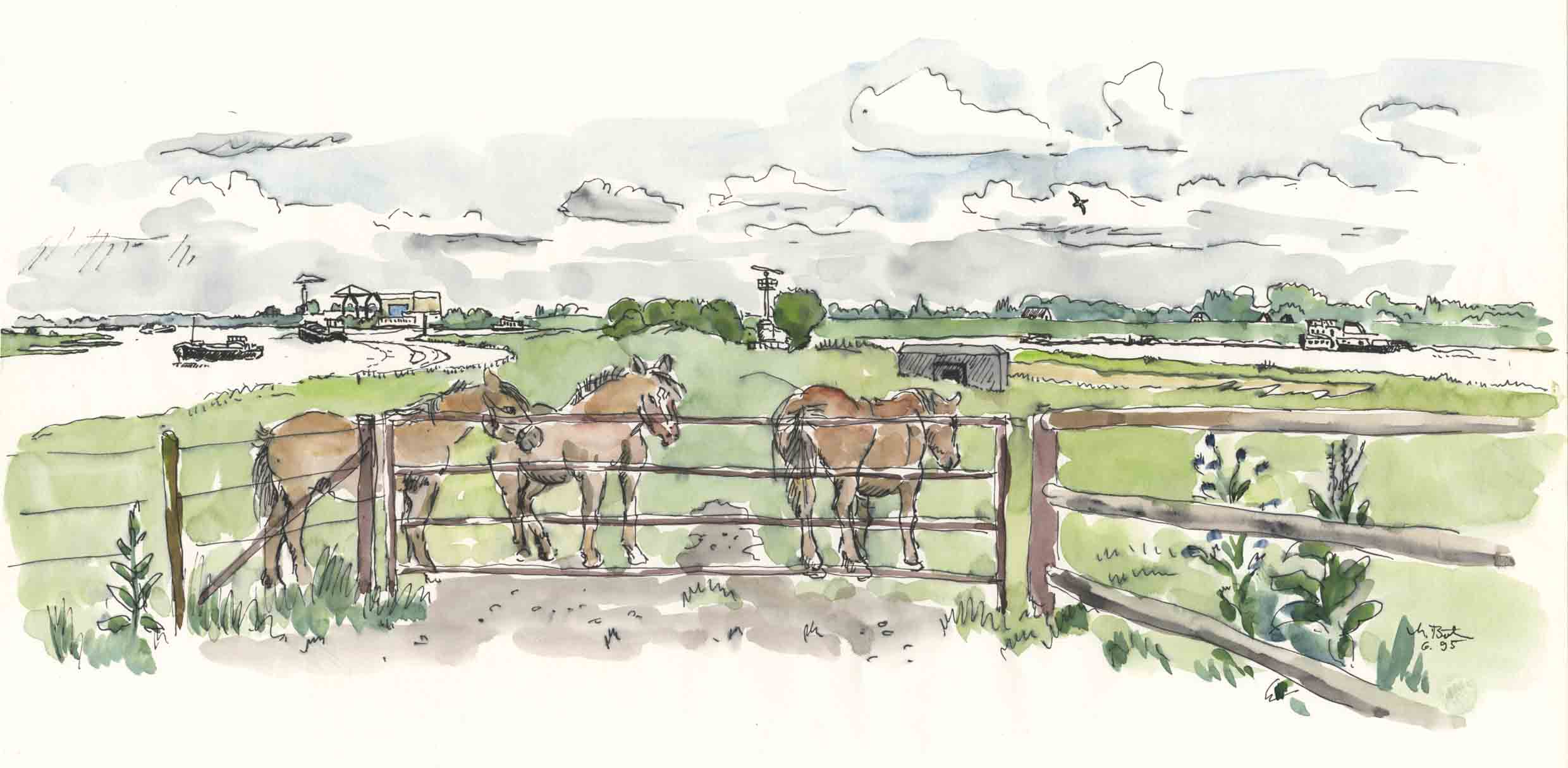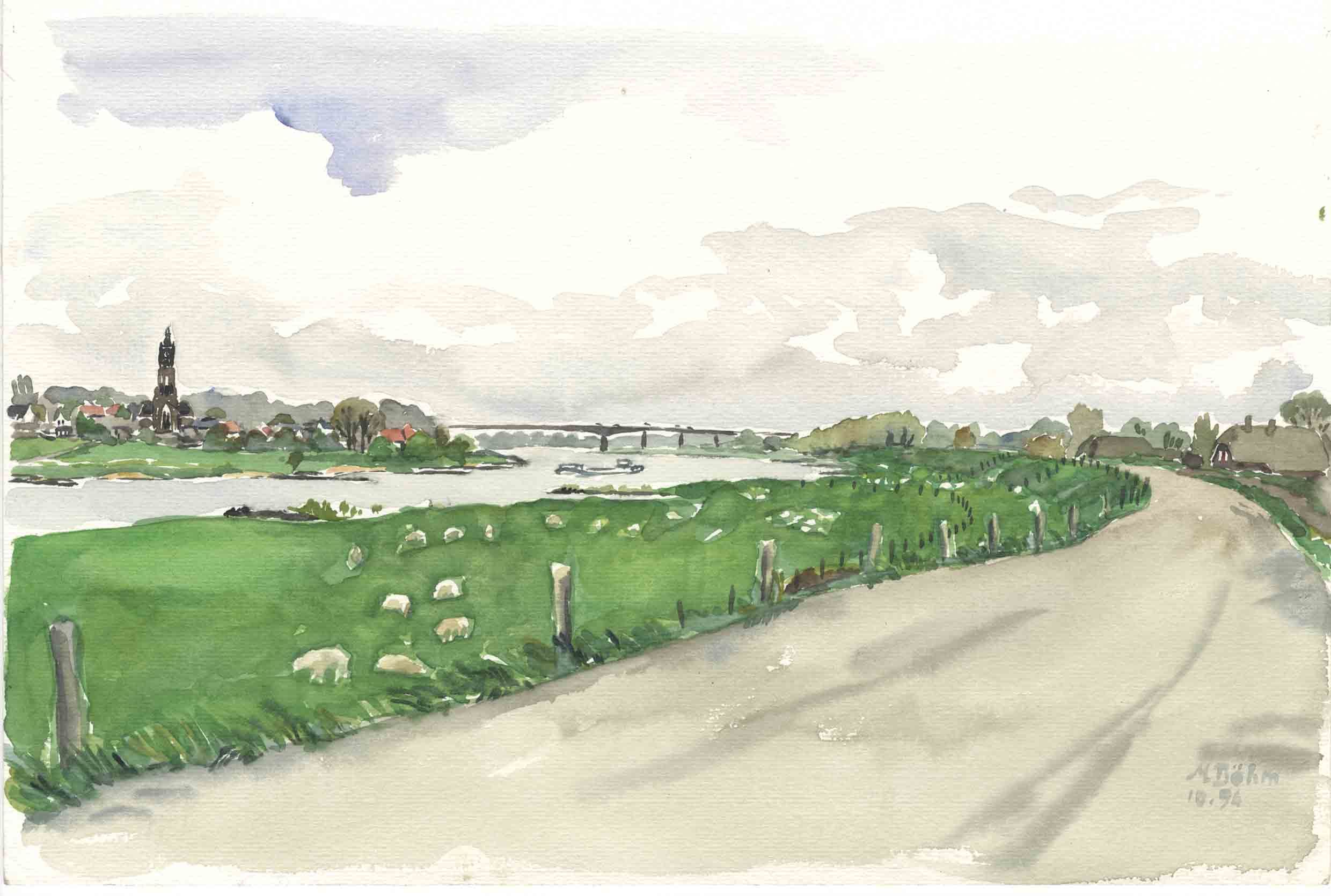 8-W-17-Az-Gaimenen-ü-6-1995 | Gaimenen, ein kleiner Ort an der Wall - oder heist der Rheinarm hier schon Merwede? Die kleinen Häuser wurden an beiden Seiten des alten Hochwasserdamms dicht gedrängt gebaut. Ich bin seither nicht mehr dort gewesen, vielleicht gibt es den Ort in der Form gar nicht mehr: es gab Pläne, den Hochwasserdamm zu erhöhen. | ||