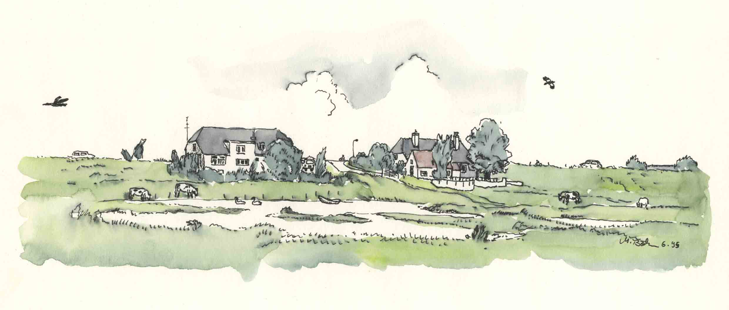 8-W-xx-Az-hintermDeich-6-1995 | Häuser im Schutze des Deiches | ||