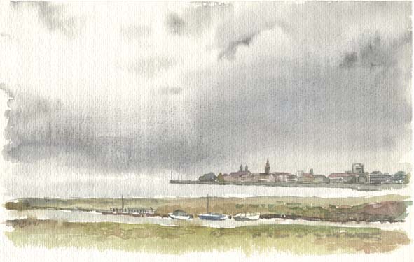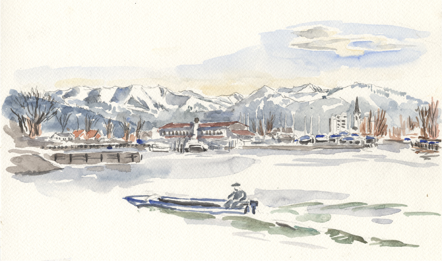 im Hintergrund der verschneite First, Karren, Frechen und Hohe Kugel. Das österreichische Städtchen Hard hat einen schönen Altstadtteil. Von der Seeseite bietet es eher einen chaotischen Eindruck, die alten Häuser sind entfernt. | ||