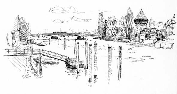 bei Konstanz wird der Bodensee für einige Kilometer zum Fluss: zum Seerhein, bevor er dann wieder zum kleineren Teil des Bodensees wird, zum Untersee mit den regionalen Unterteilungen Gnadensee, Zeller See und Rheinsee. | |||